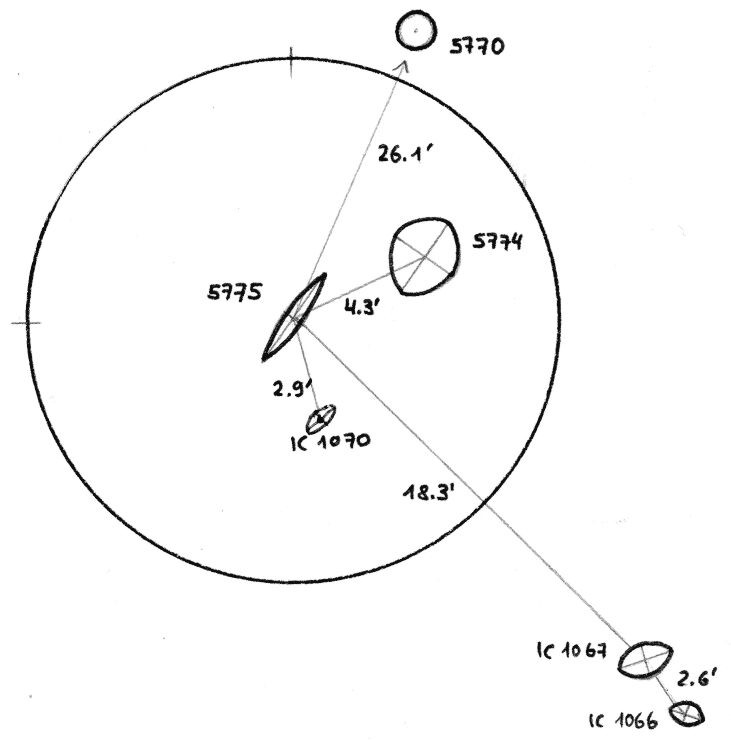 KDG 189 (Vir) NGC 5770 13.2 1.7x1.3 120 SB0 NGC 5774 13.0 3.0x2.3 145 Sc NGC 5775 12.5 4.0x1.1 146 Sb IC 1066 14.2 1.2x0.7 70 S IC 1067 13.3 2.0x1.6 110 SBb IC 1070 15.4 0.6x0.3 130 S |